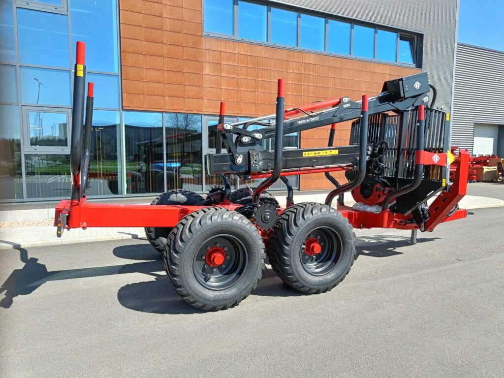FARMI FT13 är en kraftfull och pålitlig skogsvagn för tunga laster upp till 17 ton. Vagnen är byggd med så mycket specialtillverkad stål som möjligt och erbjuder en stabil och stark plattform för säker transport även i utmanande terräng.